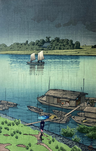 【真作保証】川瀬巴水 五月雨(荒川)