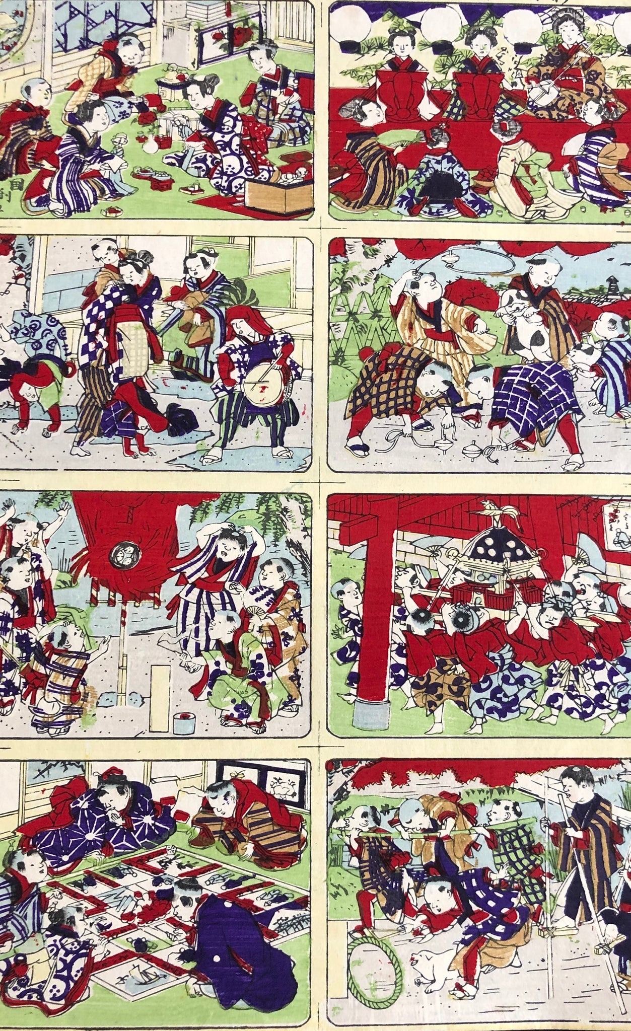 おもちゃ絵 新版子供あそび(こま、祭り、犬、双六、竹馬)